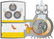 Santrifüj kuvveti nedeniyle bu kanatlar dışarı kayar ve kendileri ile gövde arasında odacıklar oluşturur. Pompalanan madde bu üç haznenin içinde hapsolur.